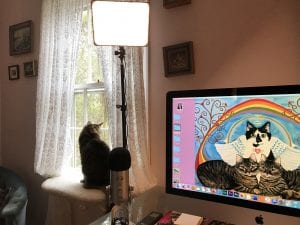Max decided to help supervise me getting ready for the live ZOOM meditation meeting. Pen on floor game!